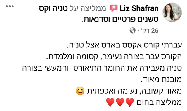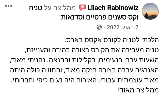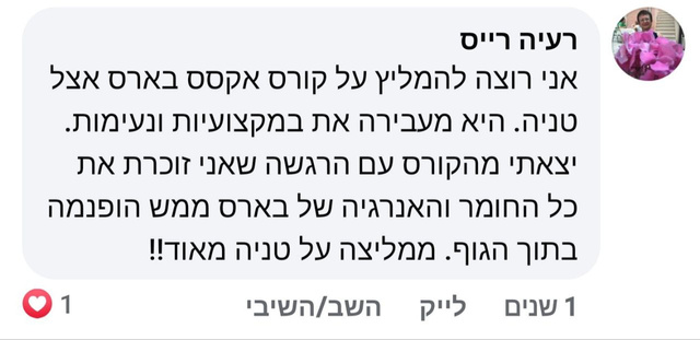 היום אני מנחה סדנאות אקסס בארס® ותהליכי גוף אנרגטיים כולל מתיחת פנים אנרגטית®, ויותר מאשמח לחלוק מהקסם הזה אתכם.